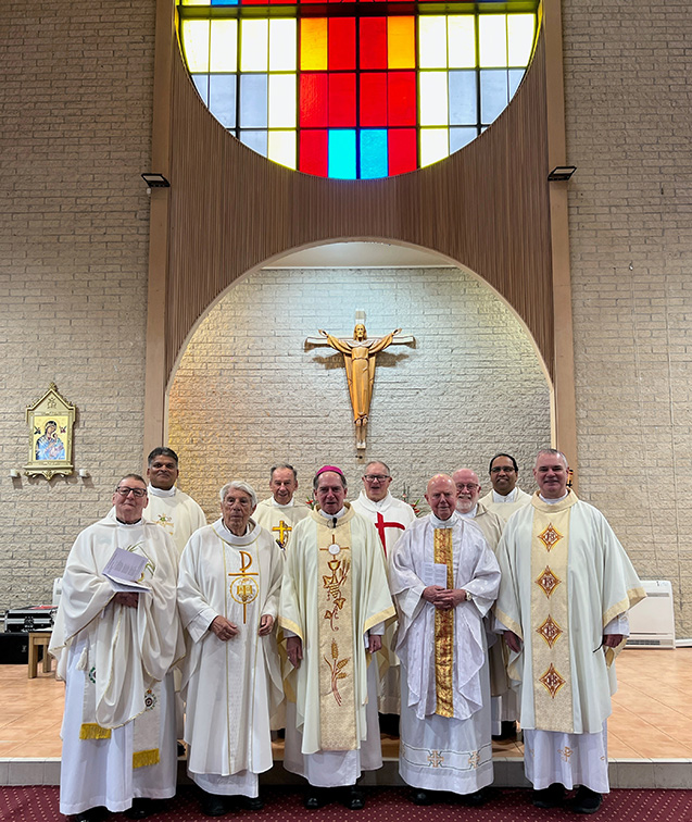 Each year the Corpus Christ Priests Association celebrate Mass and hold a dinner to acknowledge the anniversaries of those ordained in that year. On Monday, July 28, 2025, the Mass was held at Holy Eucharist Parish, St Albans and the dinner at the nearby Italian Club. Others celebrating anniversaries were invited to share the day.