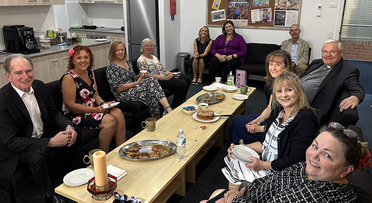 L-R: Aasha, Archbishop Charles, Max, Bishop Paul and Claire (CDF Staff Ballarat)