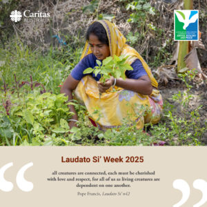 We also include a Catholic Earthcare Caritas Australia Laudato Si’ Card Set to acknowledge the anniversary.  This resource aims to deepen understanding of integral ecology by reflecting on the Laudato Si’ Goals. Changing climate and recurring natural disasters have a significant impact on the lives and livelihoods of vulnerable communities around the world. Caritas Australia works with local partners to develop programs to assist vulnerable communities to adapt and to tackle the challenges of a changing climate.