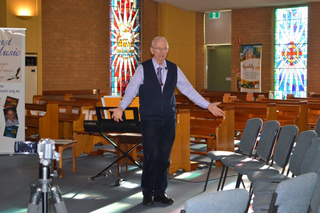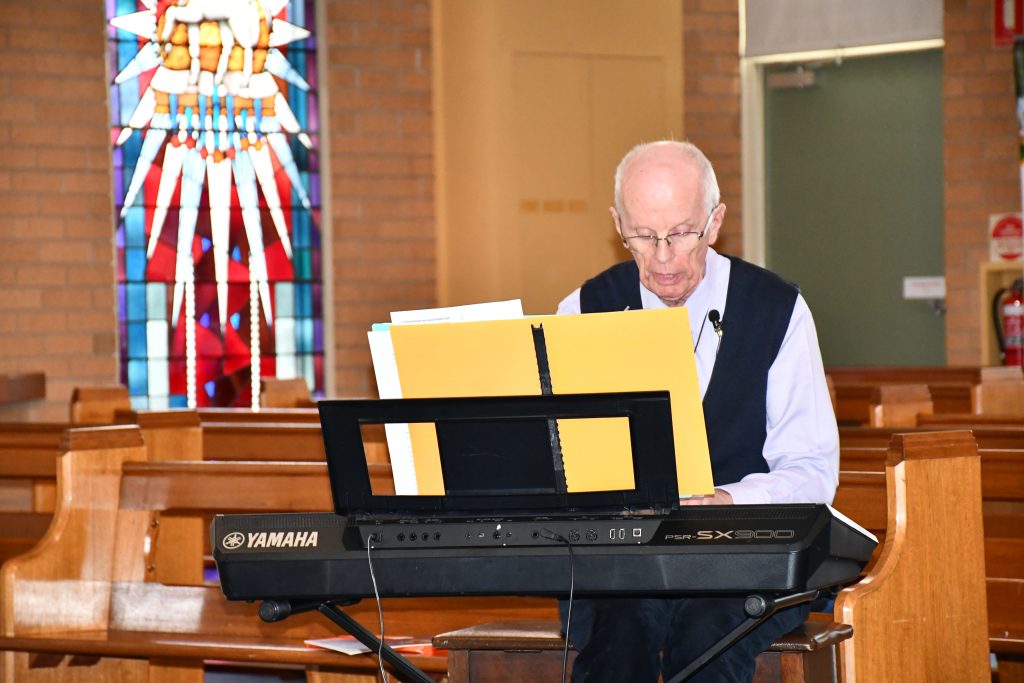 Br Michael Herry fms informed and entertained those in attendance at the Liturgical Music Workshop held on Thursday, November 20, 2025 at Our Lady Help of Christians Church, Wendouree.
