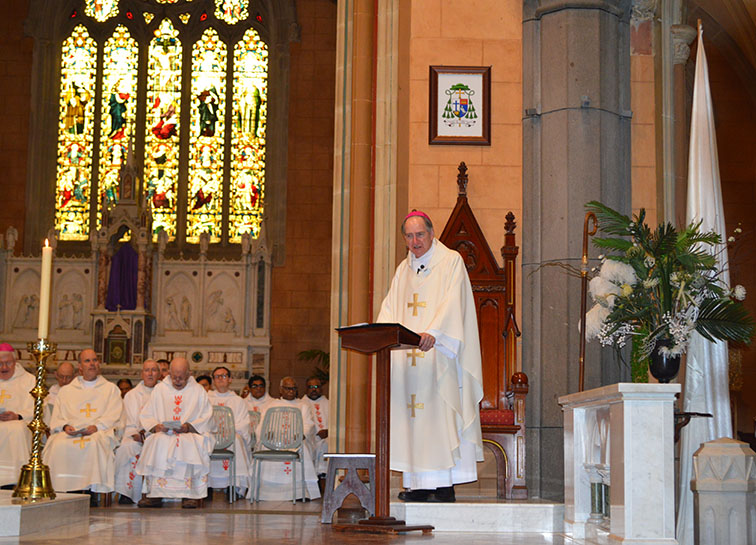 The Main Celebrant was Bishop Paul Bird CSsR, along with concelebrants Fr Marcello Colasante, Vicar General and Fr Ed Moloney, Administrator of the Cathedral Parish. The Apostolic Nuncio to Australia, Archbishop Charles Balvo, was visiting the Diocese of Ballarat during Holy Week and was welcomed to the Mass. Master of Ceremonies was Fr Gregory Tait PP, All Saints Parish, Portland.