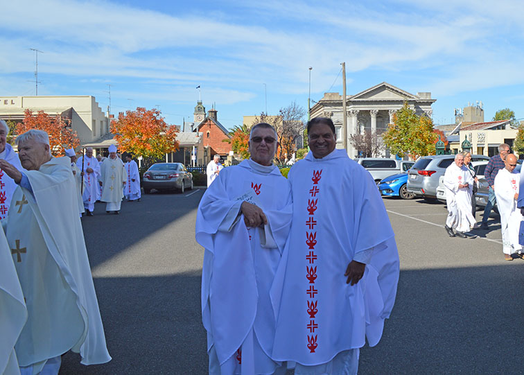 There are many people involved in the success of this Mass and thanks is extended to our very capable Altar Servers George McLennen and Adam Colla, those who prepared the oils, participated in the various ministries, welcomers, ushers, Deneise Walsh and Cathedral Parish volunteers for the decor in the Cathedral, Peter Morris for the commentary and as Sacristan, Noeline Hogan, Cathy Prunty and Gabrielle Ewing for assisting with the of oils during Mass, Kay Curran and Susan Crowe for overseeing the set-up in the Cathedral for the Mass and clergy vestments, Tony Beggs from the Ballarat Cathedral parish office, Paul Demunk from Vision by Demunk for the livestream of the Mass and members of the Pastoral Ministry Office and Diocesan Liturgical Commission.