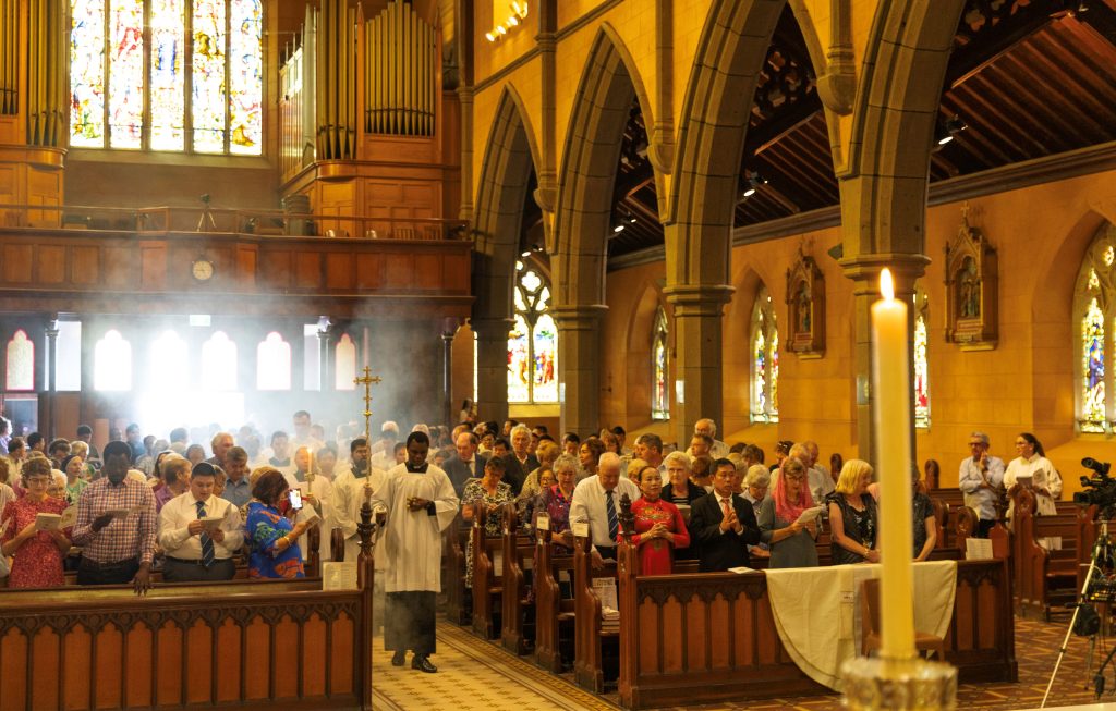 Dr Peter Morris welcomed those who filled the Cathedral and presented the Acknowledgement of Country. All were then invited to stand to begin the celebration, with a great procession of clergy and with beautiful voices and music from the choir.