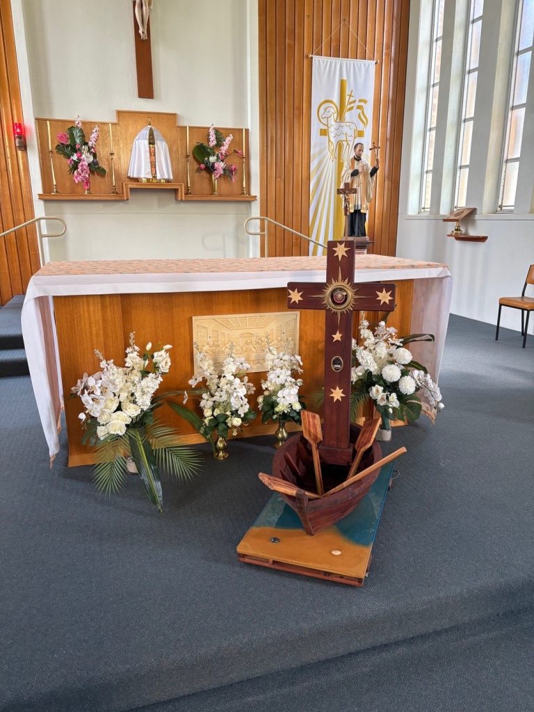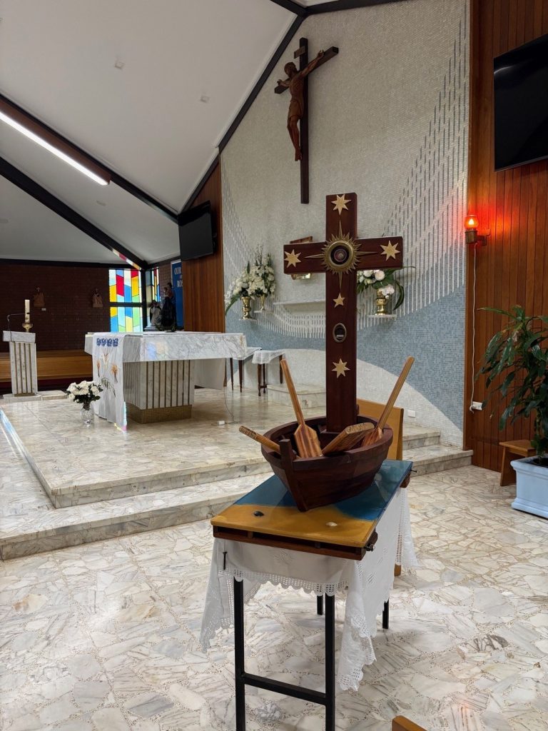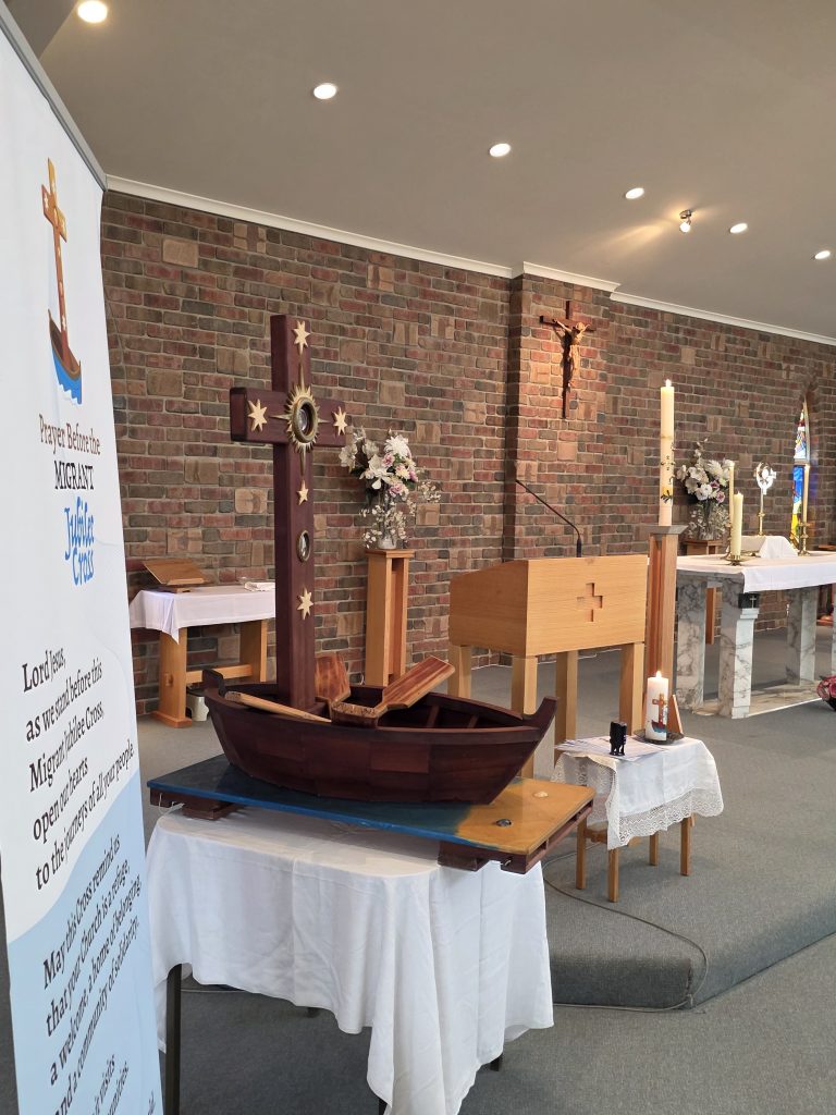 As we celebrated the Jubilee Year in 2025, “Pilgrimage of Hope”, the Migrant Jubilee Cross stands before us as a sacred and deeply moving sign of God’s love for all people, especially those who journey in search of safety, belonging, and peace. Created from Australian timber and set upon a boat-shaped base, the Cross speaks to the heart of the migrant experience and the call of the Church to be a refuge and a home for all.