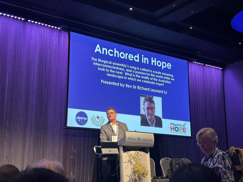Fr Richard Leonard also delivered a keynote address. He is an Australia Jesuit priest, scholar and was director of the Australian Catholic Office for Film & Broadcasting for 22 years. He has lectured on faith and culture all over the world. Richard is dynamic speaker, moving us from bellyache laughing, to tears of deep emotion. His topic was ‘Anchored in Hope: Why Alleluia is Our Song’. He shared some of the deep challenges that our church, particularly the Australian church currently faces but tempered this with many signs and examples of hope. A small story about Pope Francis is an example. Fr Richard was in St Peter’s Square when the conclave concluded and Pope Francis was elected. Traditionally the new pope comes out onto the balcony and blesses the thousands of people gathered. Newly elected Pope Francis came out onto the balcony, took the microphone and with total humility asked the throng to ‘please bless me’ and bowed his head. Richard said the crowd went profoundly quiet, stretched out their hands and prayed for the new pope.
