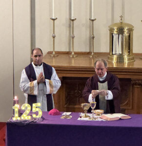 We acknowledge the people who have come to this church through the generations. We remember those who have been baptised here. We remember those who have been confirmed or made their first communion here. We remember those who have been married here. We remember those who have been buried from here. We remember those who have gathered for Mass here, as the seasons have come and gone, for a hundred and twenty-five years.