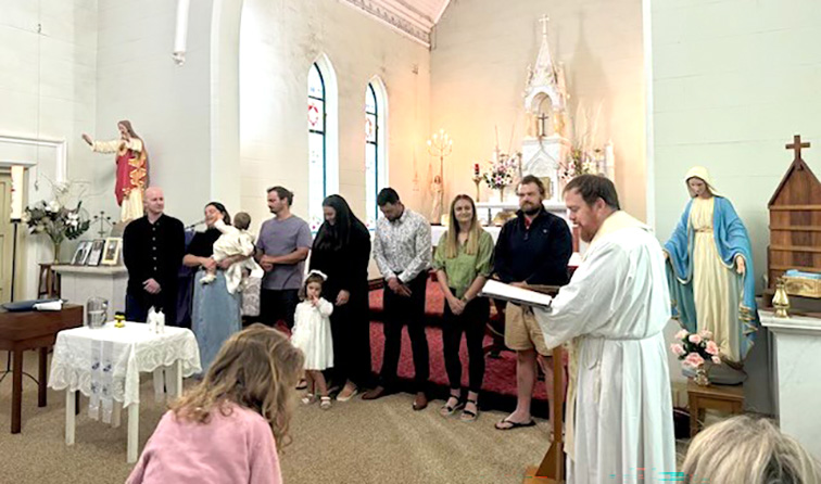 The beautiful Sacred Heart Catholic Church in Culgoa, soon to celebrate its 100th year anniversary was the setting for the Baptism of Milla Kate Hall and Angelo Lancel Summerhayes on April 20, 2025. The joyous Liturgy of Easter Sunday Mass celebrating our Risen Lord & King added a special element to the baptism ceremony.