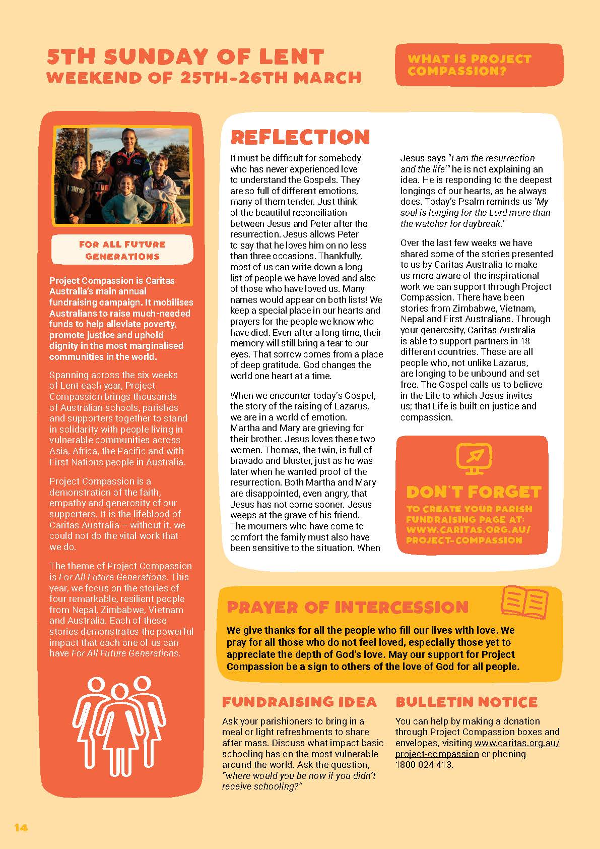 Parish and school resources for Project Compassion 2023 are available from the Caritas website. It is a great website. Check it out.